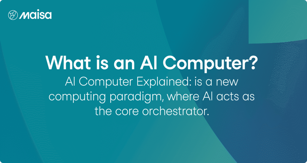 An AI Computer is a new computing paradigm, where AI acts as the core orchestrator. It manages tools, data, and tasks to deliver real outcomes, not just answers.